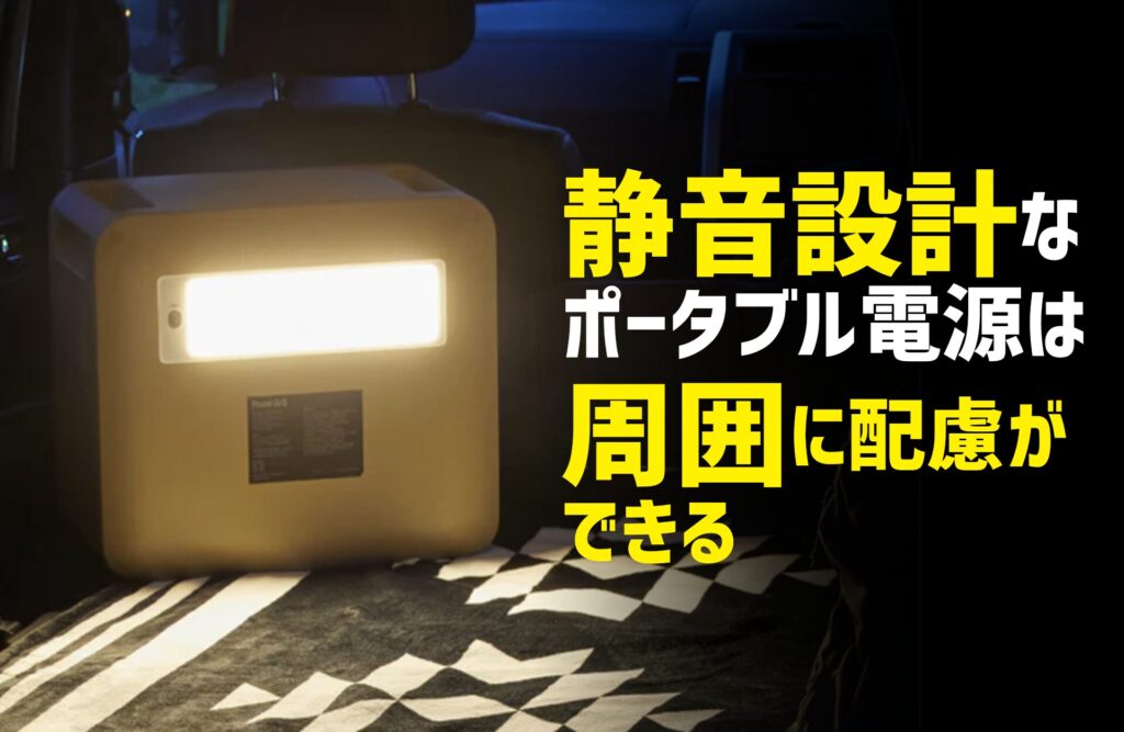 - 静音設計なポータブル電源は、周囲に配慮ができる