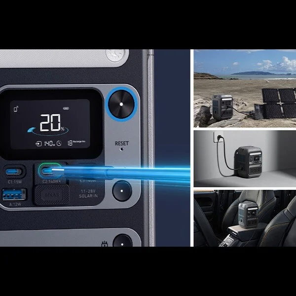 出力ポートはAC×3、USB Type-C×2 (140W)、USB Type-C×1 (15W)、USB Type-A×1、シガーソケット×1を完備する。