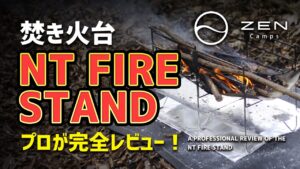 下の記事では、筆者が野営キャンプでZEN Camps焚き火台 NT FIRE STANDを使った、実践レビューがあります。どこよりもわかりやすいレビューとなっています。
